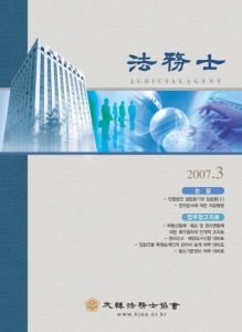 귓꾹芬궁 J·U·D·I·C·1·A·L·A·G· Ii: ·N·T 2007.3 - 민법법인 설립등기와 입법론( 11 ) - 전X梧서에 의한 지급명령 - 부동산침해 • 췌손 및 권리변동에 대한 메각절차의 단계적 조치표 - 권리신고 • 배당요구신청 대비표 - 집합건물 록정승계인의 관리비 승계 여부 대비표 - 말소기준권리 여부 대비표 @久輯去硏터"戶 www.kj aa.or.kr
