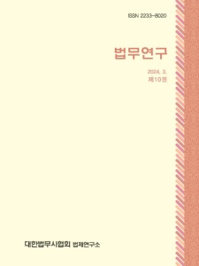 발 간 사 대한법무사협회는 법무사법 개정과 더불어 민사 송무에서 법무사 보수 자율화 방향 전환, 덤 핑 강요 등 금융기관, 공기업의 갑질문제에 대한 효과적인 대응과제를 해결해야 하는 과제를 안 고 있습니다. 이러한 환경에서 법무사는 그 어느 때보다 더욱 전문자격사로서 업무에 전문성을 갖추기 위한 노력을 경주해야 할 것입니다. 대한법무사협회 법제연구소에서는 법무사 회원들에게 업무향상은 물론 수준 높은 법률서비스 제공을 위해 2010년 3월에 「법무연구」 창간호를 시작으로 2024년에 드디어 제10권을 발간하 였습니다. 법무사의 전문연구자료집으로 하나의 결실을 맺게 된 것을 매우 기쁘게 생각합니다. 그 동안 법무연구에 수록된 논문은 법제도, 민사실무, 등기실무, 형사, 집행 기타 다양한 분야 연 구자료로 법무사 뿐만 아니라 대학교수, 실무가들이 여러 영역을 넘나들면서 연구성과를 정리한 연 구성과물입니다. 법무연구에 실린 연구논문이 실무에 도움이 되고, 전문성 고취에 도움이 되길 바 랍니다. 이번 제10권에서는 민사, 등기, 민사집행, 도산법, 외국법 등 각 분야별로 이론과 실무를 아우르는 연구논문 9편과 제17회(2022년), 제18회(2023년) 한·일 학술교류회 자료를 실었습니다. 그리고 특집으로 故 윤상철 법제연구위원님의 아름다운 추억을 기리며 추모의 장을 마련하였 습니다. 이제 힘들었던 생전의 무거운 짐 모두 벗으시고 편히 쉬시기 두 손 모아 기도드립니다. 앞으로도 대한법무사협회 법제연구소에서 이론과 실무를 바탕으로 현실과 호흡하고 의미 있는 연구활동의 성과물들이 나와 법무연구가 더욱 발전해 나가게 되기를 기대합니다. 이 책의 발간을 위해 옥고를 제출해주신 집필자 여러분들과 바쁘신 가운데서도 발간 준비를 위해 애쓰신 편집위원님들, 그리고 제10권 발간을 주도하신 황정수 법제연구소장님에게도 깊은 감사의 인사를 드립니다. 감사합니다. 2024. 3. 대한법무사협회 협회장 이 남 철